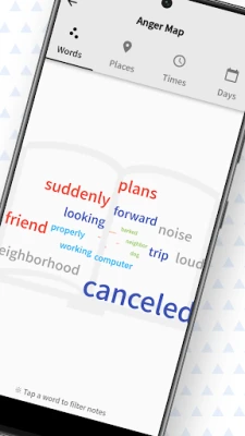 ฟีเจอร์ "แผนที่ความโกรธ" จะวิเคราะห์ข้อมูลที่คุณบันทึกและแสดงผลเป็นภาพที่เข้าใจง่าย เผยให้เห็นคำสำคัญหรือหัวข้อที่มักกระตุ้นความโกรธของคุณ Semaphorously การทราบว่าเมื่อใดและที่ไหนที่คุณมักจะโกรธ (ตามเวลา สถานที่ และวันในสัปดาห์) ยังช่วยให้คุณสามารถเตรียมรับมือหรือหลีกเลี่ยงสถานการณ์เหล่านั้นได้ล่วงหน้า เพื่อชีวิตที่สงบสุขยิ่งขึ้น