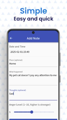 แอปนี้ได้รับการออกแบบมาเพื่อช่วยให้คุณสำรวจแก่นแท้ของความไม่พอใจ โดยการบันทึกทุกเหตุการณ์ที่ก่อให้เกิดความขุ่นเคือง การกระทำง่ายๆ นี้จะช่วยให้คุณเริ่มมองเห็นรูปแบบและตระหนักถึงสิ่งกระตุ้นที่แท้จริง ซึ่งนำไปสู่การยอมรับและมุมมองที่เป็นกลางมากยิ่งขึ้น คุณอาจแปลกใจที่พบว่าสิ่งที่เคยทำให้คุณเดือดดาลนั้น ไม่ได้เป็นเรื่องใหญ่โตอย่างที่คิด